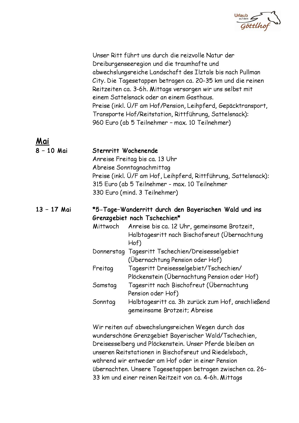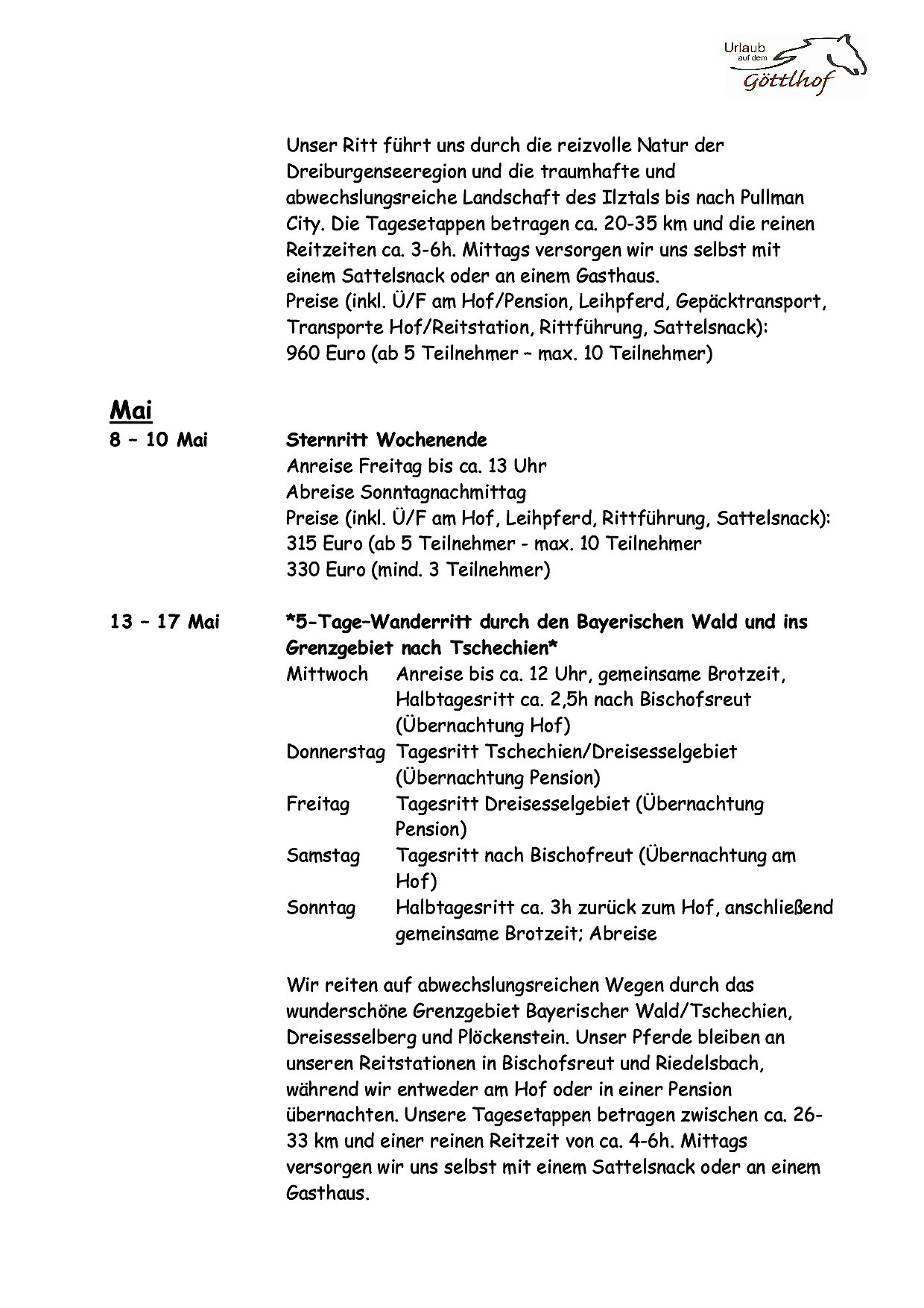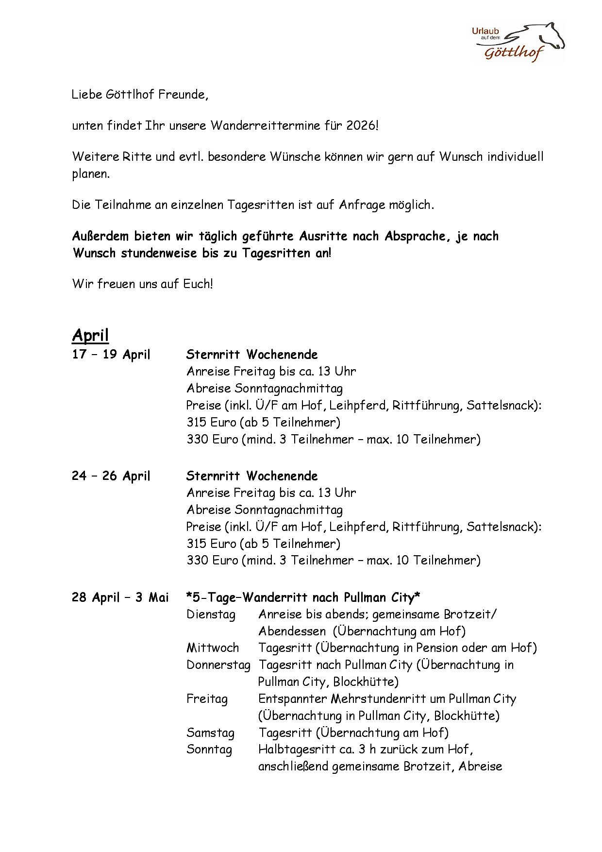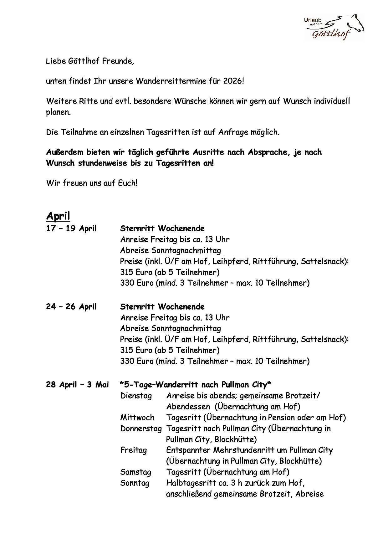 Weitere Ritte und evtl. besondere Wünsche können wir individuell planen!