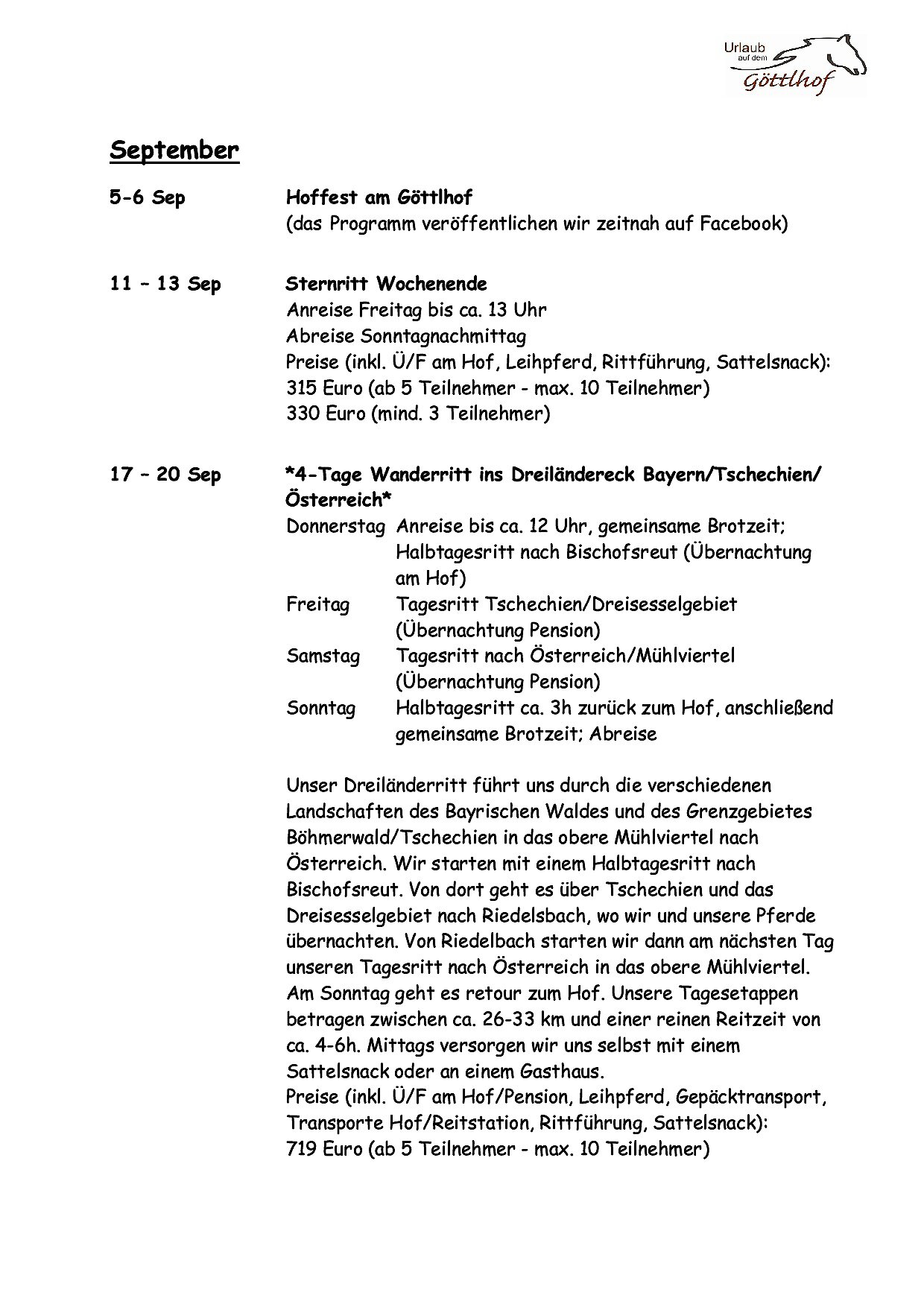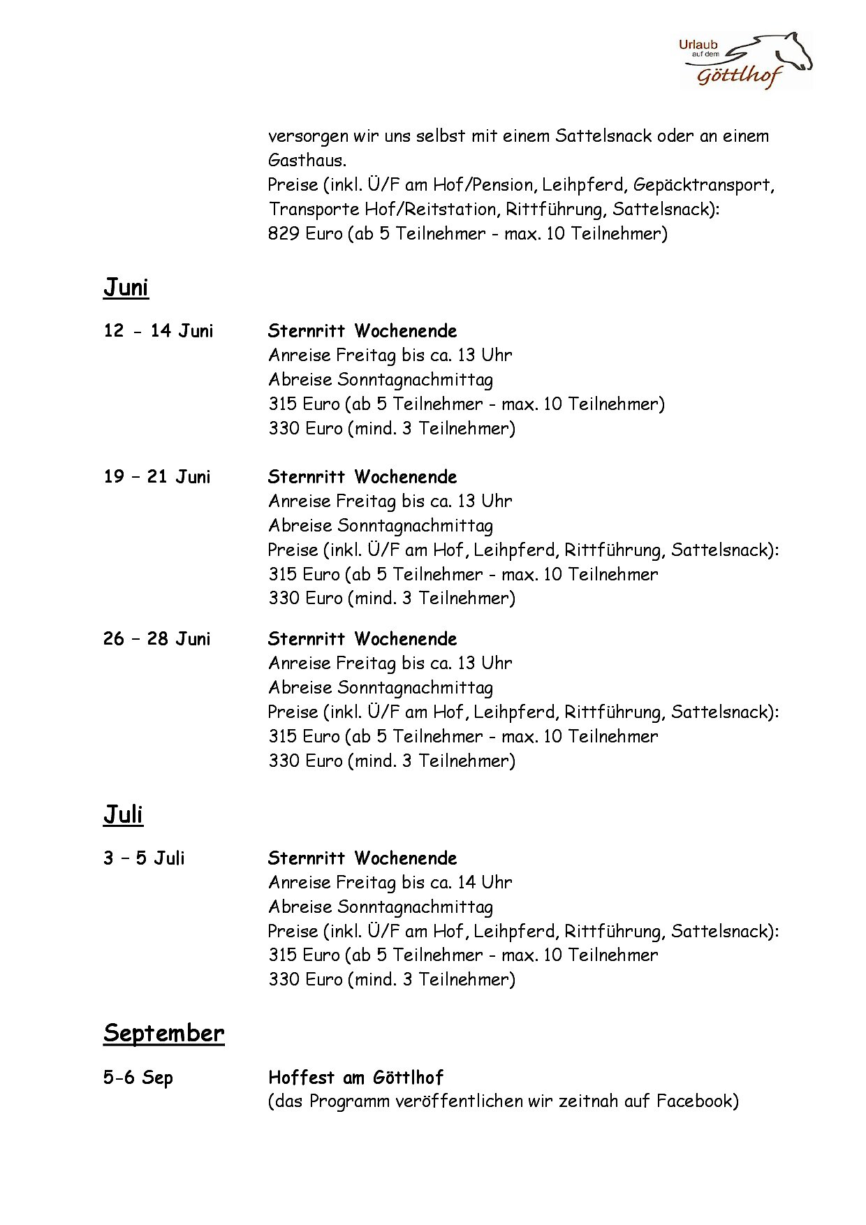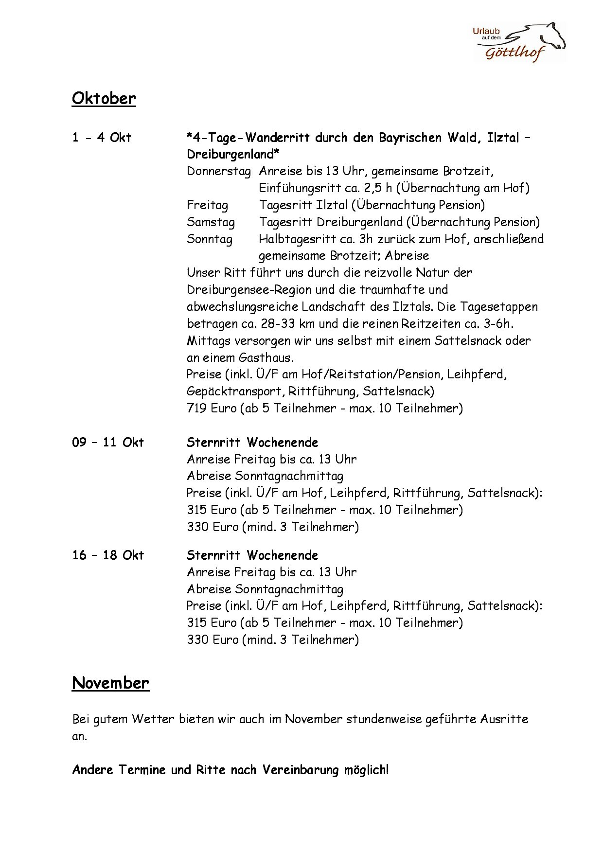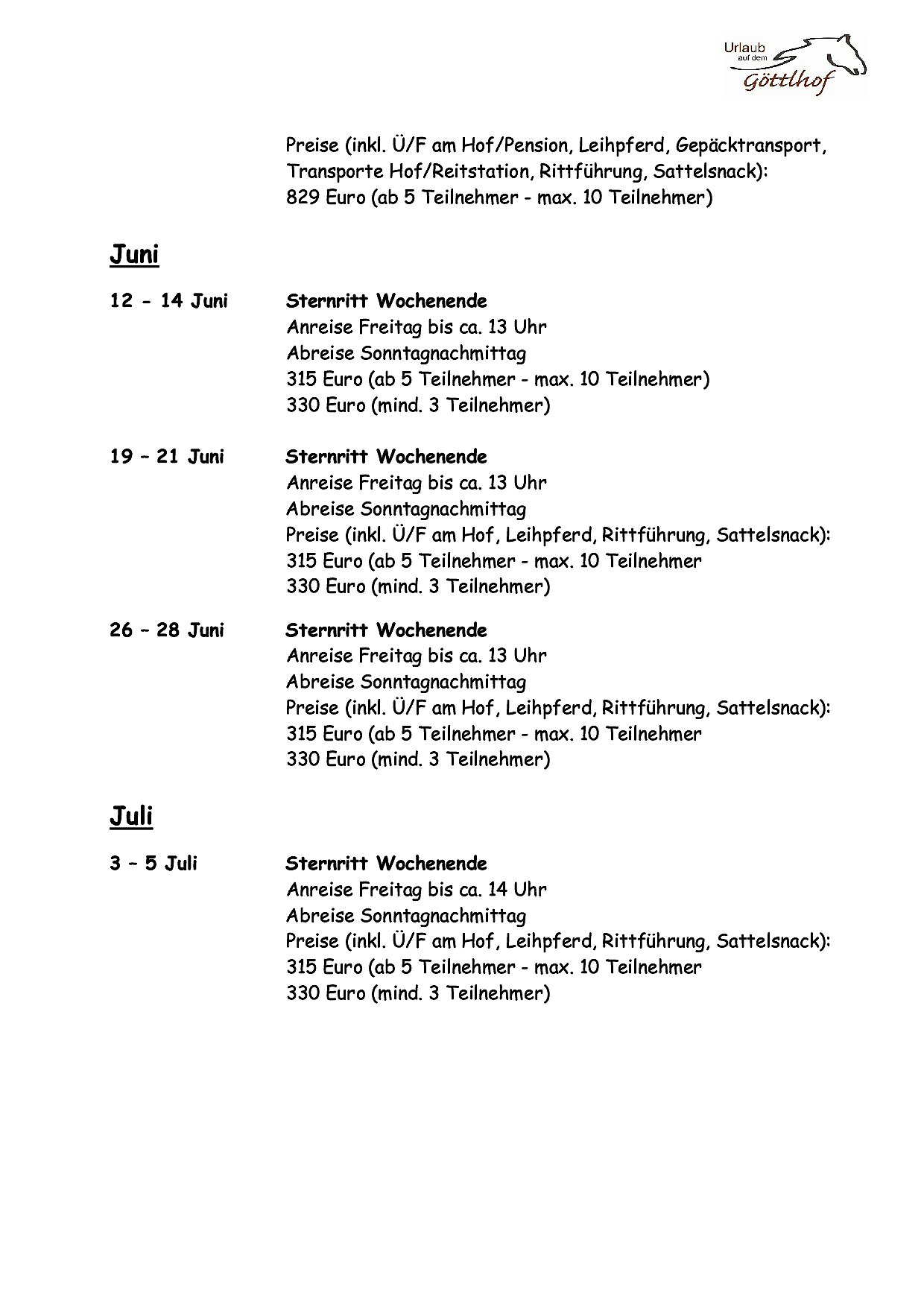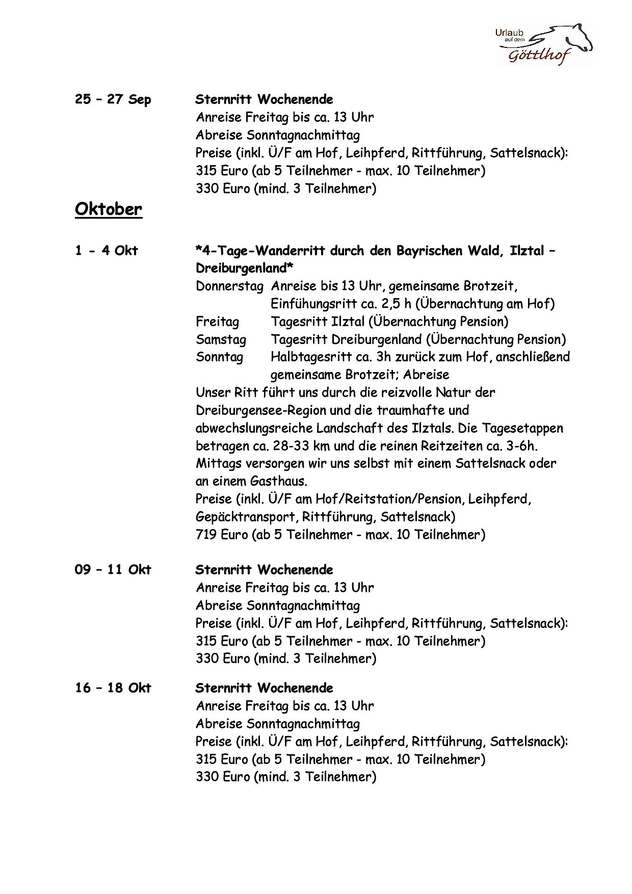 Weitere Ritte und evtl. besondere Wünsche können wir individuell planen!